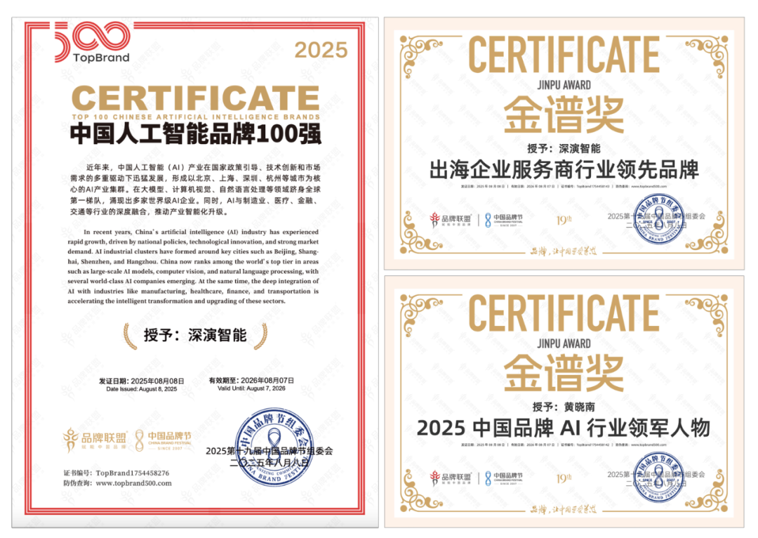 8 月 9 日晚举办的荣耀盛典上,人生就是搏·尊龙z6智能凭借深厚的 AI 技术实力与出色专业的出海服务能力,斩获 “2025 中国品牌节金谱奖・出海企业服务商行业领先品牌”“2025 中国人工智能 100 强” 等多项重磅奖项。其创始人兼 CEO 黄晓南荣膺 “2025 中国品牌 AI 行业领军人物” 称号。未来,人生就是搏·尊龙z6智能将紧跟时代步伐,持续聚焦 “AI 与出海”—— 这一方向高度契合时代脉搏与中国品牌发展的迫切需求,旨在汇聚智慧力量破解发展阻碍,为中国品牌赋能